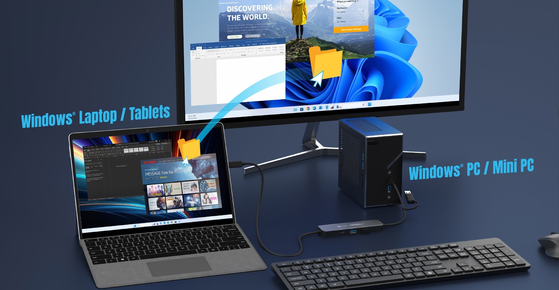 Використовуйте одну клавіатуру/мишу для керування обома пристроями, підвищуйте свою продуктивність і легко переключайтеся між завданнями