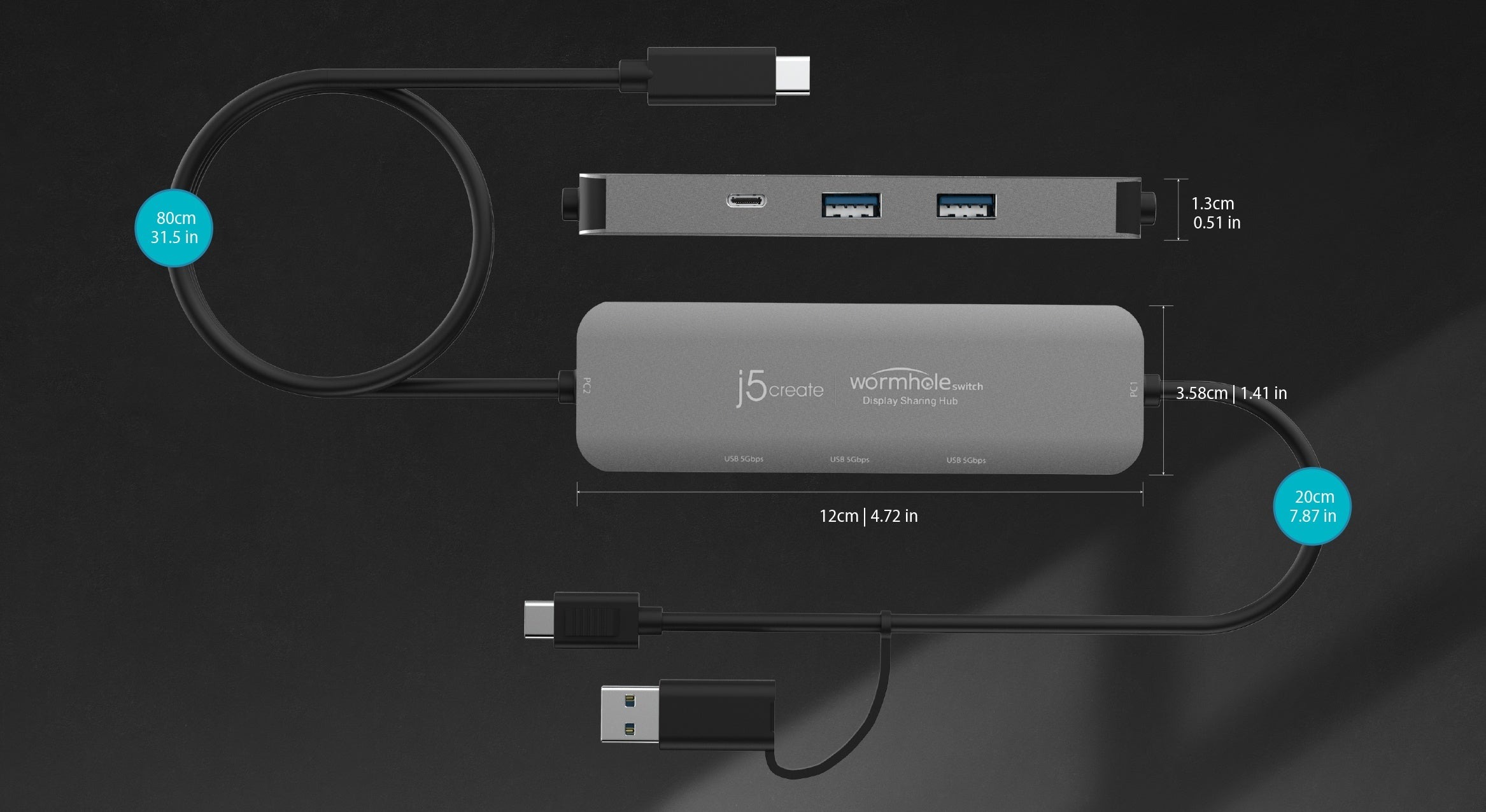 З вбудованими 2 портами USB™ Type-A і 1 портом USB-C® 5 Гбіт/с для підключення різноманітних периферійних пристроїв. Цей хаб — це універсальне рішення для підвищення продуктивності та безперебійного підключення. Він ідеально підходить для професіоналів, таких як інженери, дизайнери, творчі люди та всіх, хто працює на двох комп'ютерах Windows®.