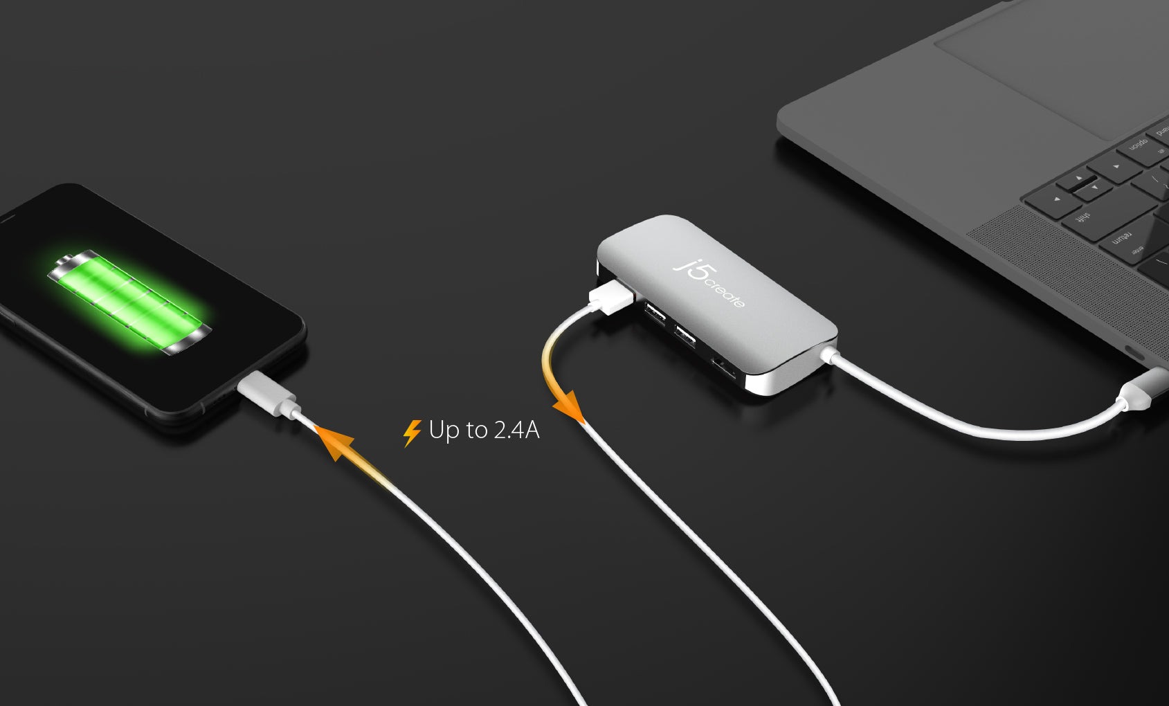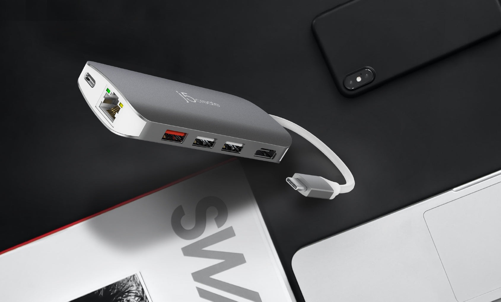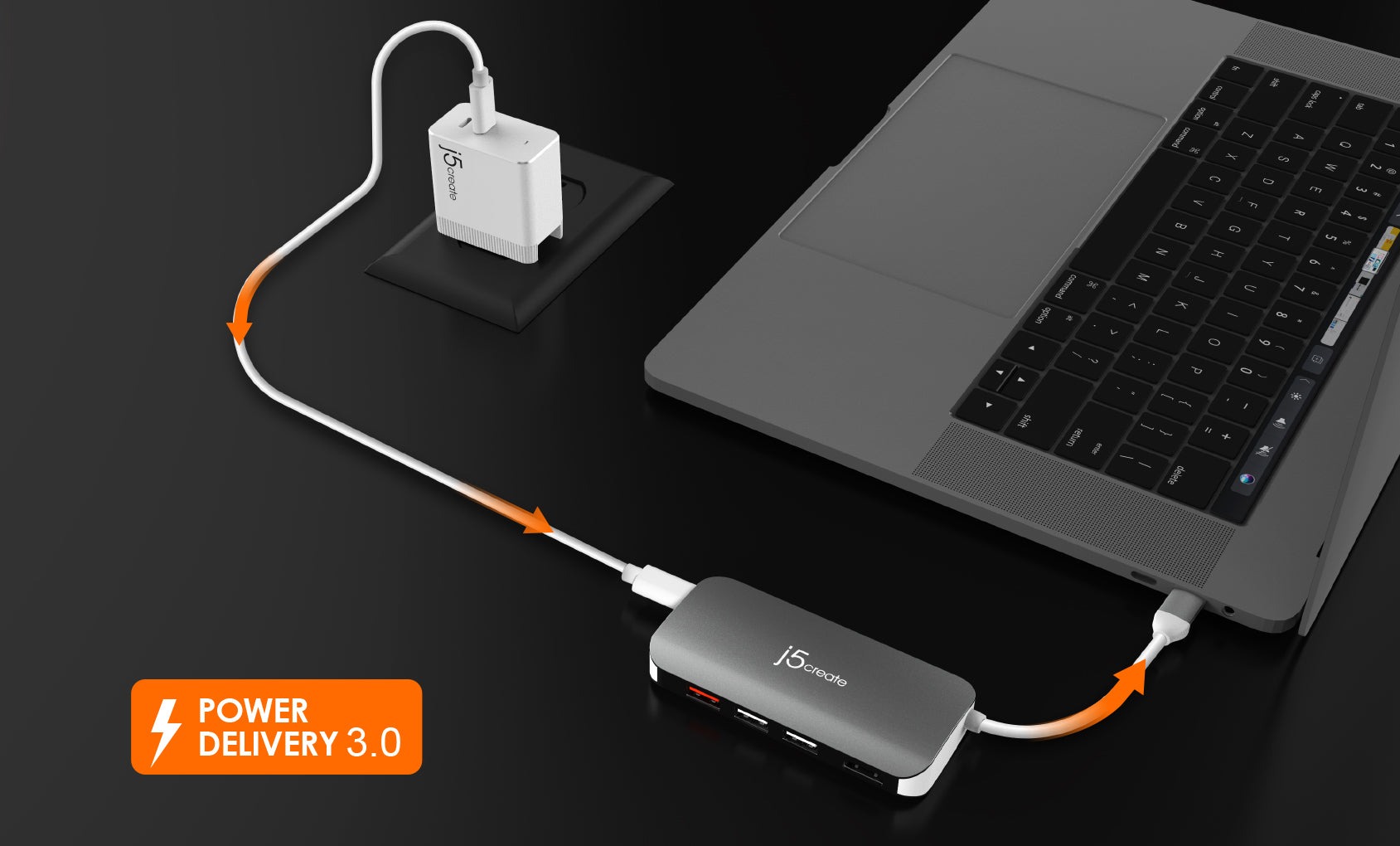 Завдяки USB-C® Power Delivery 3.0 адаптер забезпечує заряджання в обох напрямках при підключенні до адаптера живлення USB-C®. Він також забезпечує прямий доступ до дротової мережі та карт пам'яті SD™ і microSD™.