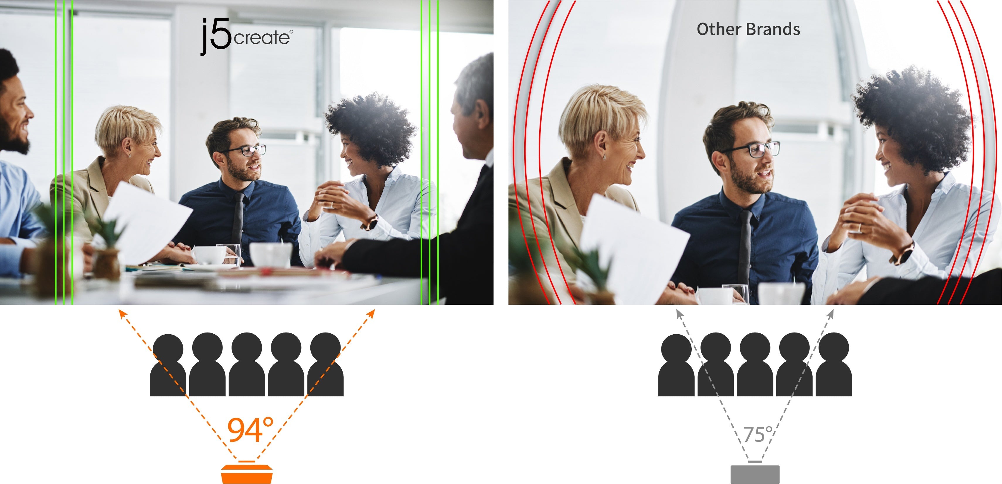 Широке поле зору 94° з мінімальною спотворенням забезпечує чітке відображення кожного учасника.