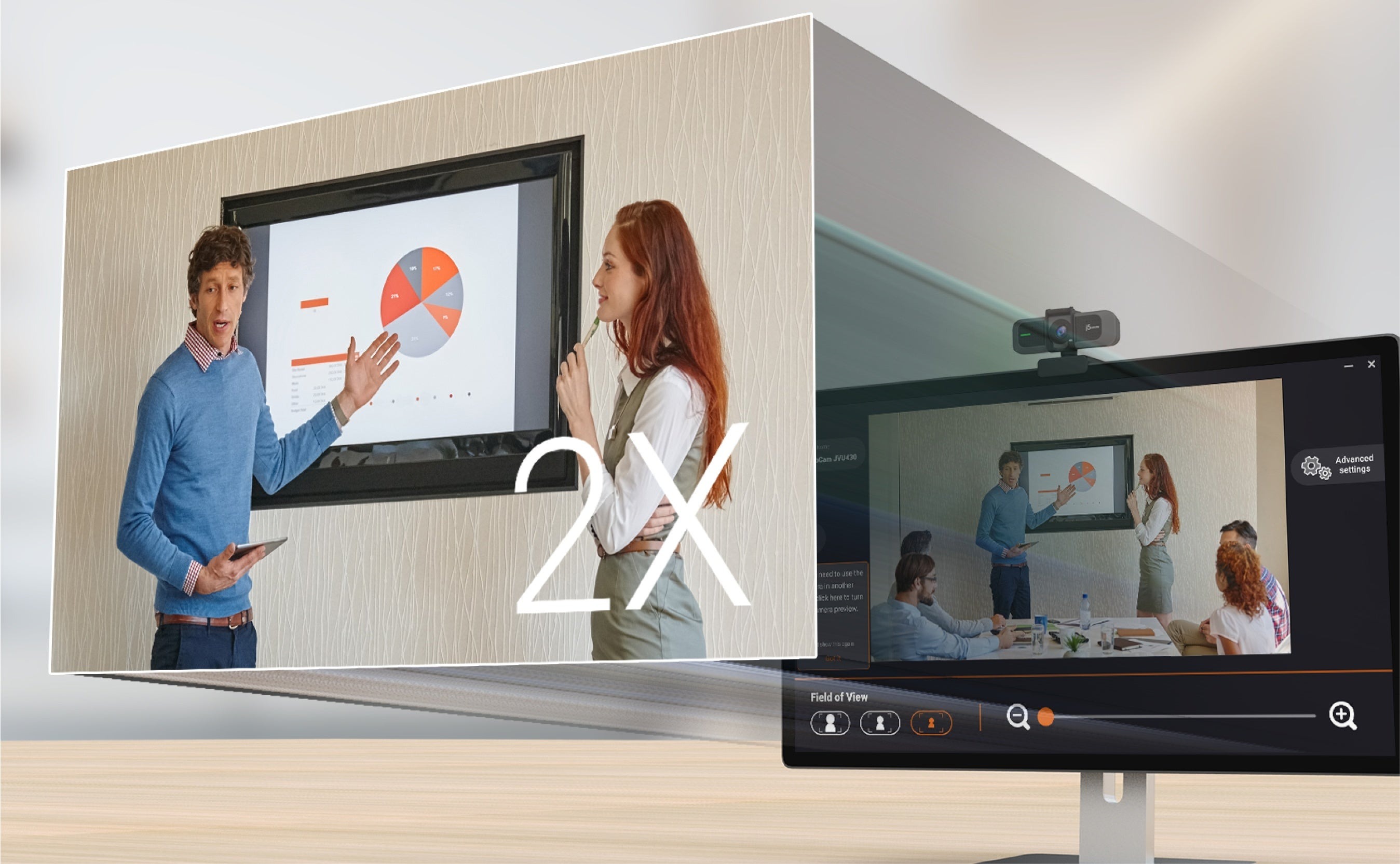 Веб-камера JVU430 USB™ 4K Ultra HD забезпечує плавне відео у форматі Ultra HD та HD, підкреслюючи найдрібніші деталі рухів та вирази обличчя. Веб-камера JVU430 ідеально підходить для щоденного використання. Вона оснащена двома мікрофонами та сенсором зображення, який автоматично налаштовується відповідно до різних умов освітлення — все, що потрібно, щоб виглядати та звучати якнайкраще під час відеодзвінків. Веб-камера має функцію оберту на 360 градусів, що дозволяє здійснювати дзвінки під будь-яким кутом, а також має вбудовану шторку для захисту конфіденційності, коли камера не використовується. JVU430 оснащена кабелем USB-C® і перехідником на USB™ Type-A для роботи як зі старими, так і з новими пристроями.