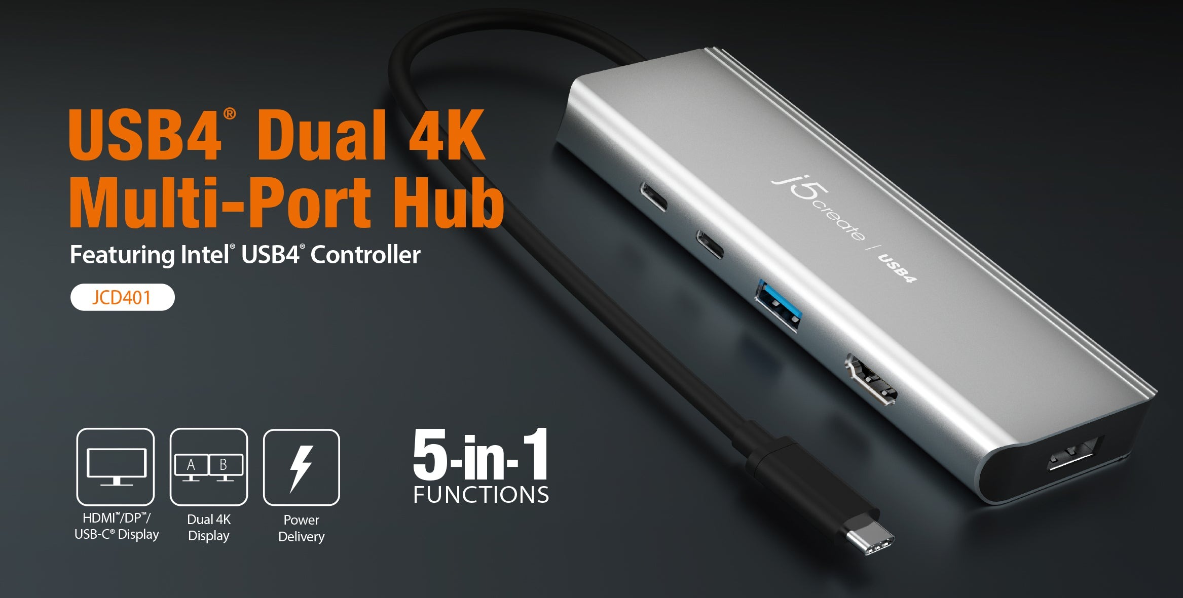 - 1 - Багатопортовий концентратор JCD401 USB4® Dual 4K Multi-Port Hub