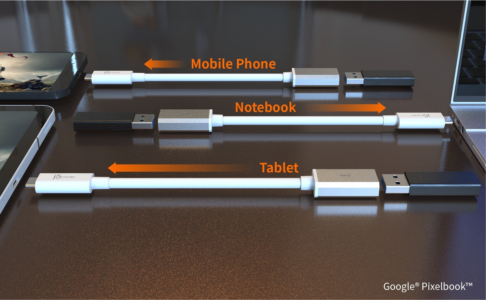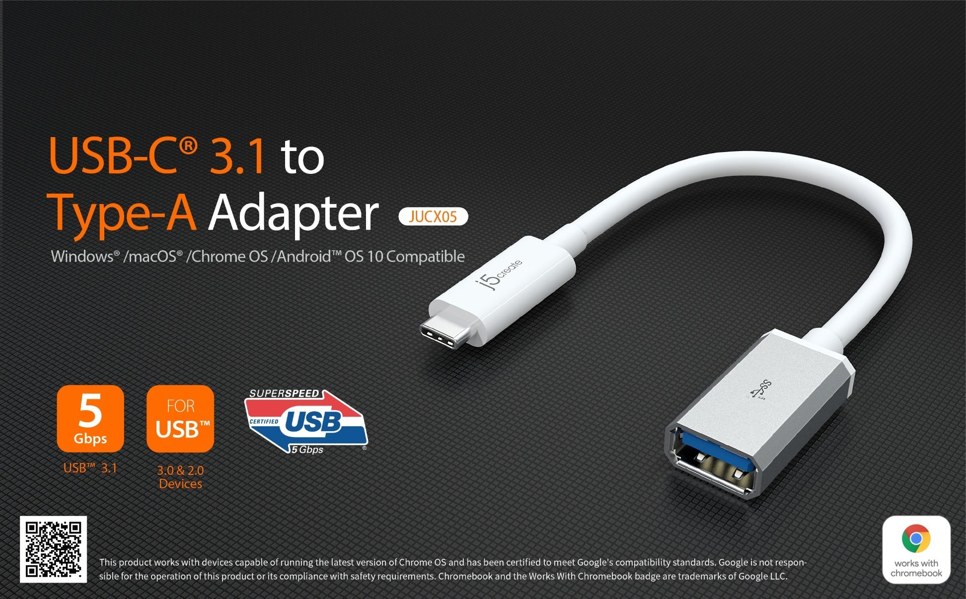 Перехідник JUCX05 USB-C® є потужним і двостороннім, його неможливо підключити неправильно. Кабель USB-C® підтримує USB™ 3.1 зі швидкістю до 5 Гбіт/с для швидкої передачі файлів. JUCX05 також сумісний з пристроями USB™ 3.0 і USB™ 2.0. Пристрій пропонує зручний спосіб підключення флеш-накопичувача USB™ до телефону або планшета.