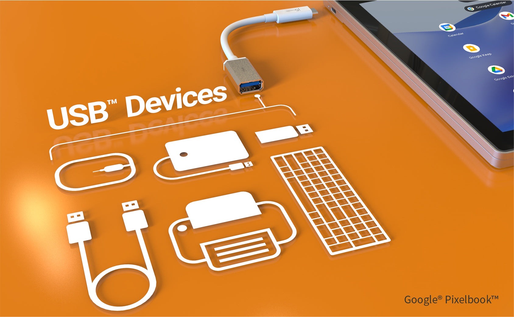 Перетворіть порт USB-C® на порт USB™ Type-A і підключіть телефон, флеш-накопичувач, клавіатуру або інший стандартний пристрій USB™.